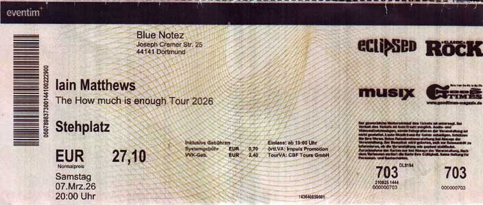 weil ich Iain Matthews bereits mehrfach live gesehen hatte und annahm, da auch nichts "Wichtiges" zu verpassen. Die Karte wollte ich