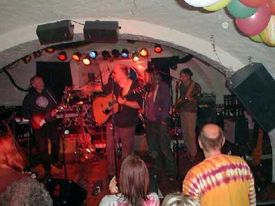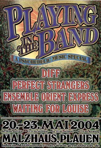 Himmelfahrt 2004 waren wir auf dem kleinen, aber feinen Festival der deutschen Deadheads zu Gast! Am Tag vor der Abfahrt gab's dann aber eine böse Überraschung: Petra wurde krank und wir sind ohne unsere Sängerin in's Vogtland aufgebrochen... Ohne Petra zu spielen ging zwar irgendwie, war aber natürlich nicht so schön, als wäre sie dabei gewesen! Schade, dass sie zu Hause bleiben musste. Hier gibt's erste Bilder vom Samstaggig, wo uns Julia Waberseck beim von den Dead bekannten Folksong "I Know You Rider" gesanglich unterstützt hat. Die beiden Bilder sind von der Germanheads-Homepage, geknipst von einem Ralph, dessen "Ding" wir aber ansonsten leider nicht waren. Insgesamt waren die Reaktionen etwas verhaltener als wir erwartet hatten (wir waren im Vorfeld sehr euphorisch!), aber man kann aus dem bodenständigen und selbstbewussten Countrymädchen Louise eben keine Jamband-Lady machen. Louise weiss, was geht und spielt im Gegensatz zu manch anderen Leuten keine 10minütigen Gitarrensoli, wenn's auch kürzer geht! |